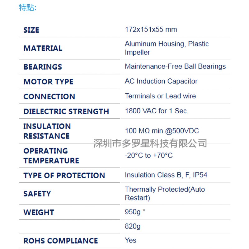 臺灣達盈風機AC軸流風機系列(全金屬耐高溫風機)(具體規格參數請咨詢客戶)